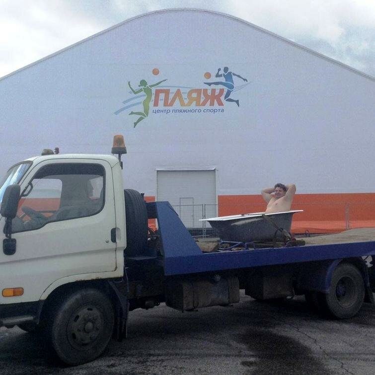 Мужика в корыте эвакуируют с пляжа?