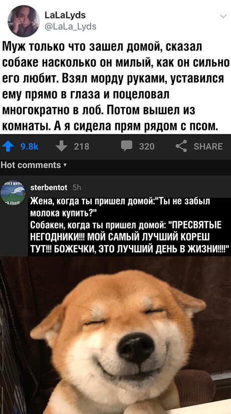 Ага, как в анекдоте. Заприте в гараже жену и собаку, и посмотрите, кто будет больше радоваться вам, когда вы его откроете.