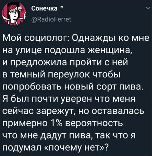 Раз человек об этом рассказывает, значит его не зарезали, а дали пива, а возможно и еще чего-нибудь :))