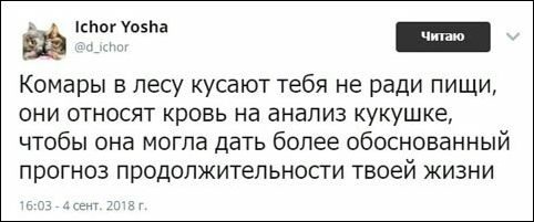 Класс, весело! Переборол себя и пошел пить пиво, вот это сила воли!!!)) Про кукушку очень логично, а Иисус Христос и Илья Муромец — очень даже интересно...++++++