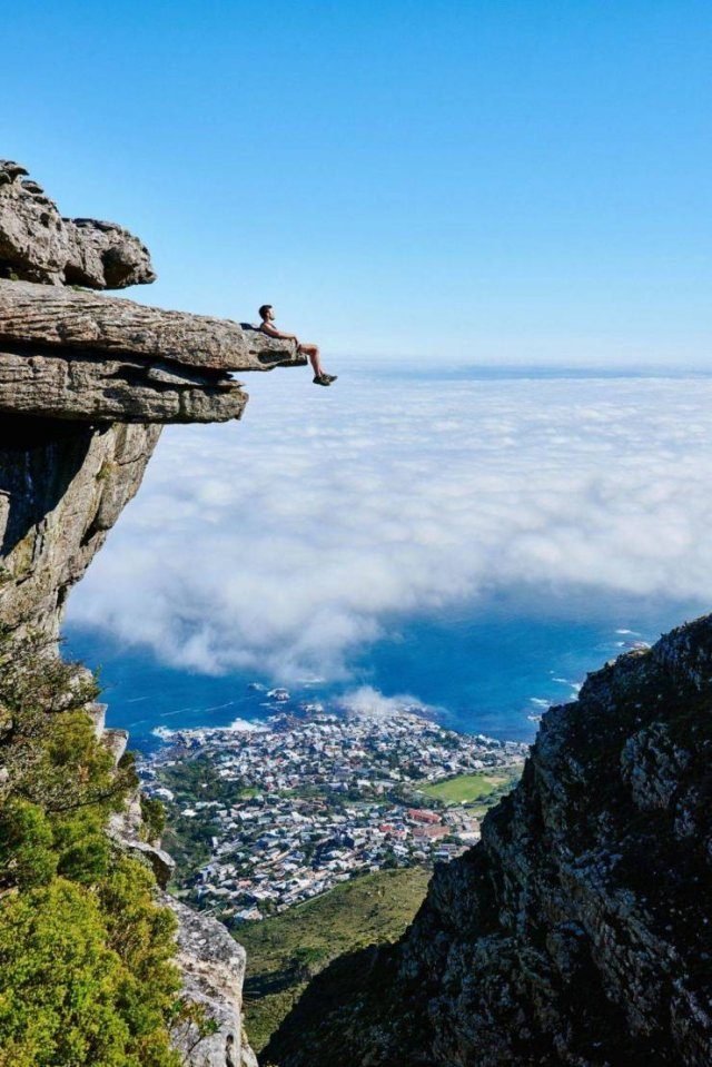 Реально мороз по коже, когда туристы сидят над пропастью, надеясь что кусок скалы не отломится