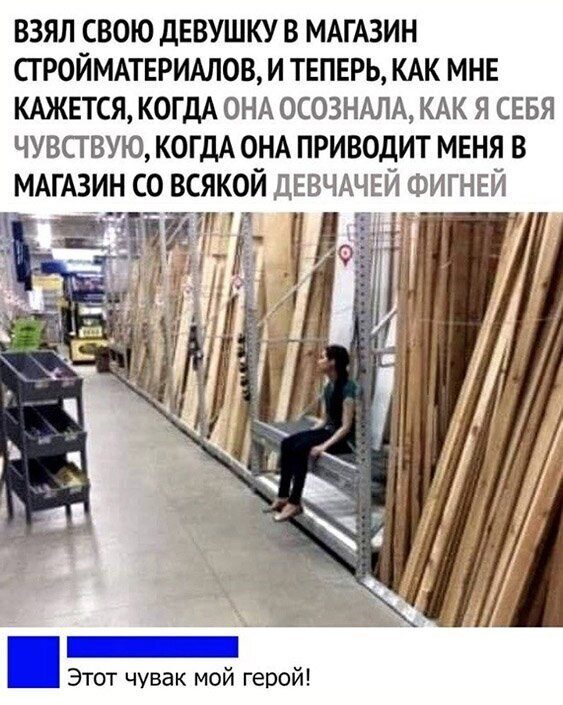 Три холостяка, пионерское приветствие и заколка прикольная, я бы с будуна тоже упал на ужас!))) Ну и конечно же поход в строй-магазин с девушкой))+++!