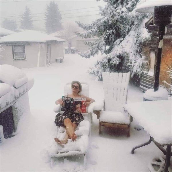 Снежный отдых под зонтом, соблюдение социальной дистанции с помощью клюшки, мишки на дороге, занесённые снегом автомобили и другие сцены из повседневной жизни канадцев.