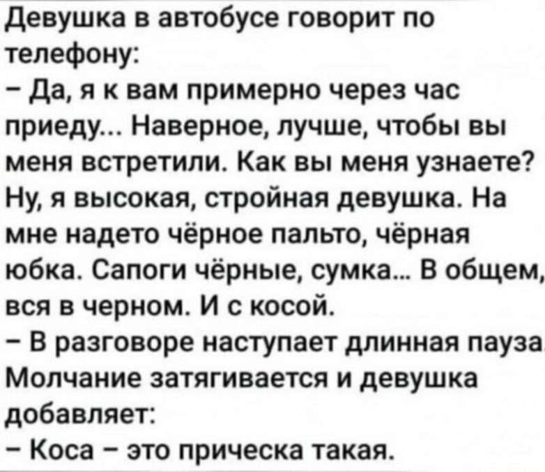 Девушка вся в черном и с косой. Тут любой потеряет дар речи :))