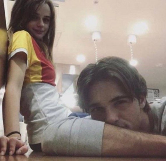 Парень целует волосатую ногу девушки (на самом деле -свою руку)!
