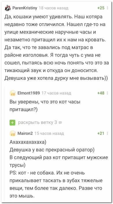 Часы точно котяра притащил, только не ваш а ЕЁ, её котик ненасытный… ))))))))))))))))