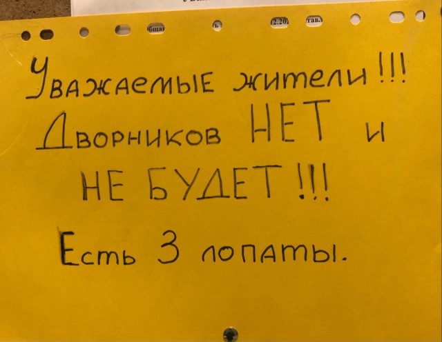 Иногда и три лопаты — хорошо. А то у нас, вроде, дворники 'есть', а сугробы откапывать некому и нечем