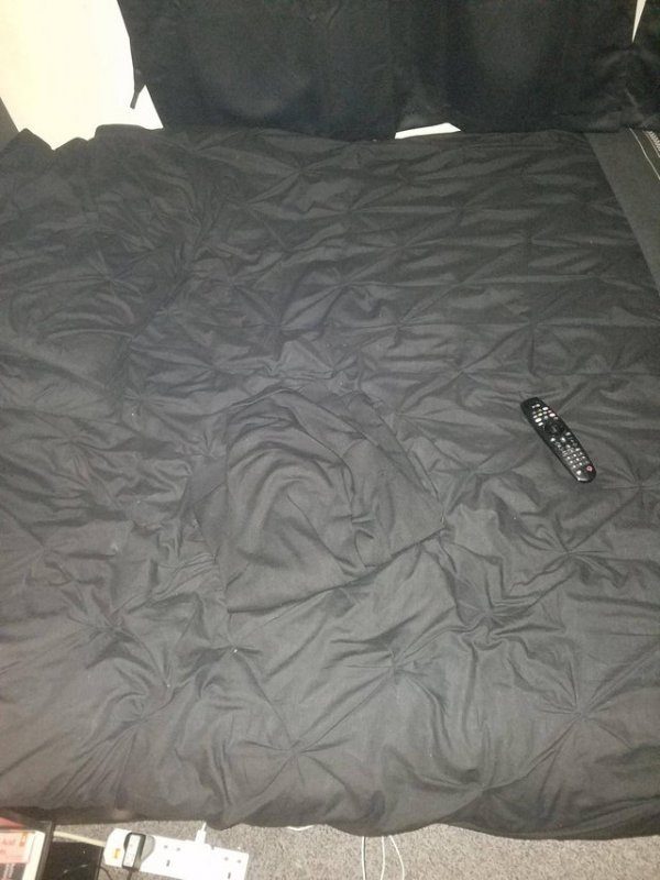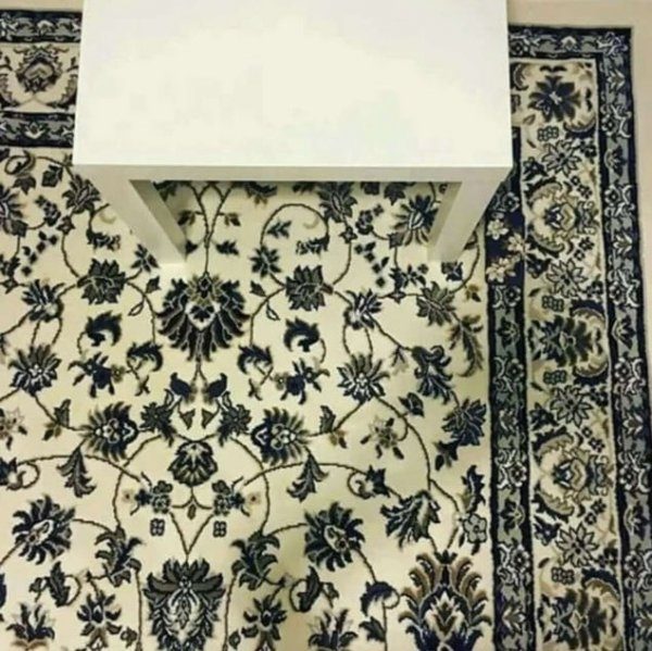 Сложно, не правда ли? Присмотритесь, справа от ножки стола, где на ковре синяя полоса.