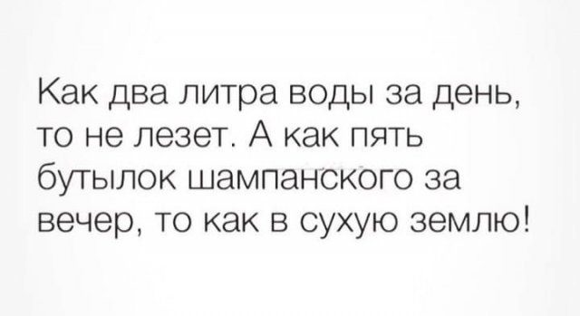 Пять шампанского, как в сухую землю!)))