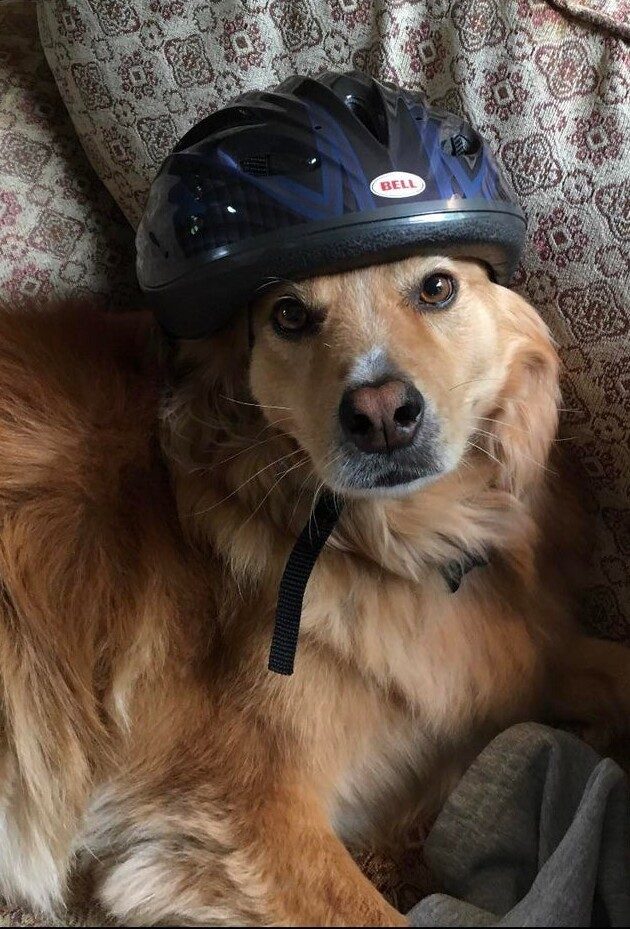 Ну почему считают, что если надеть на собаку каску, фуражку, шапку — то это смешно, прям трындец?