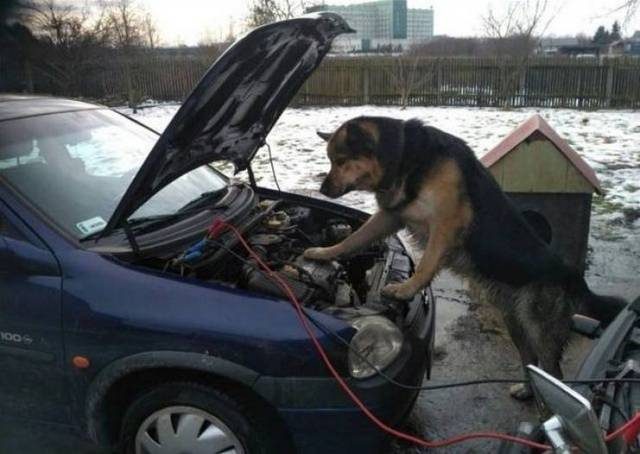 А что прикольного в собаке, которая разбирается в моторах?
