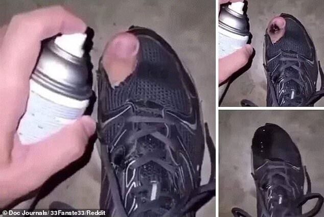 Замаскировать некстати появившуюся дырку в ботинке поможет черная краска