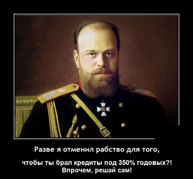 Шутки шутками, но какое рабство отменил Александр III? А выкупные платежи были, мама не горюй, какие. Их до 1905 года выплачивали. В общем, вам двойка по истории.