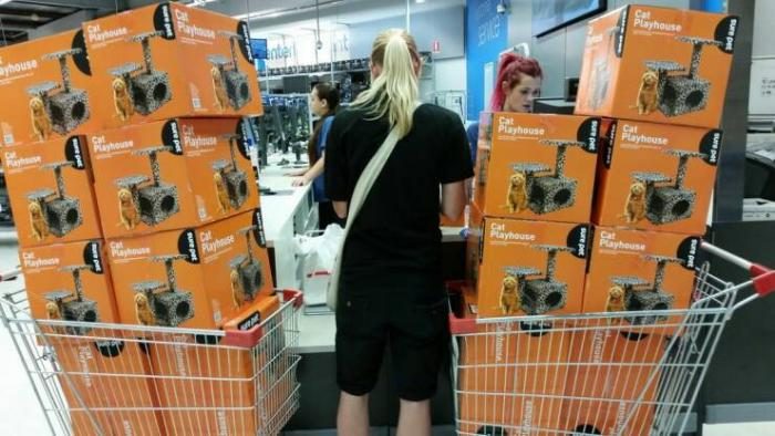 Коты сражаются за право прокатиться в стиральной машинке