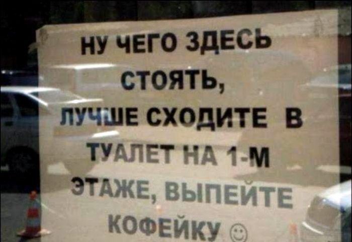 Смешные вывески, забавные объявления., над созданием которых работали настоящие юмористы!