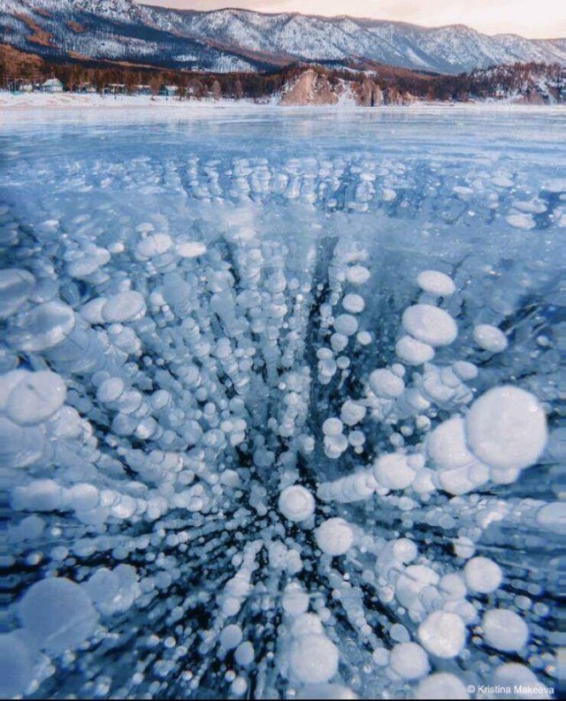 Пузыри метана во льду Байкала