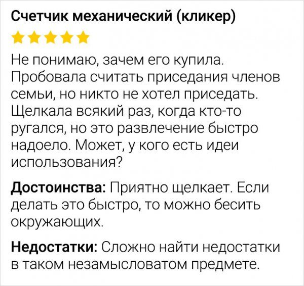 Перед тем как совершать ту или иную покупку, народ очень внимательно читает комментарии от прошлых клиентов и покупателей. И… далеко не всегда информация от них бывает полезной. Но зато она может быть очень забавной!