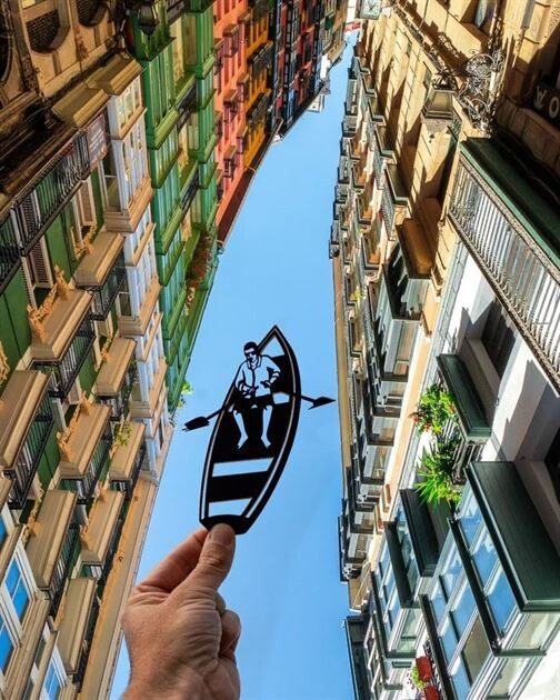 Во время своих путешествий он создаёт креативные фотографии с помощью вырезанных из бумаги силуэтов, превращая достопримечательности в фантастический мир, где возможно всё.