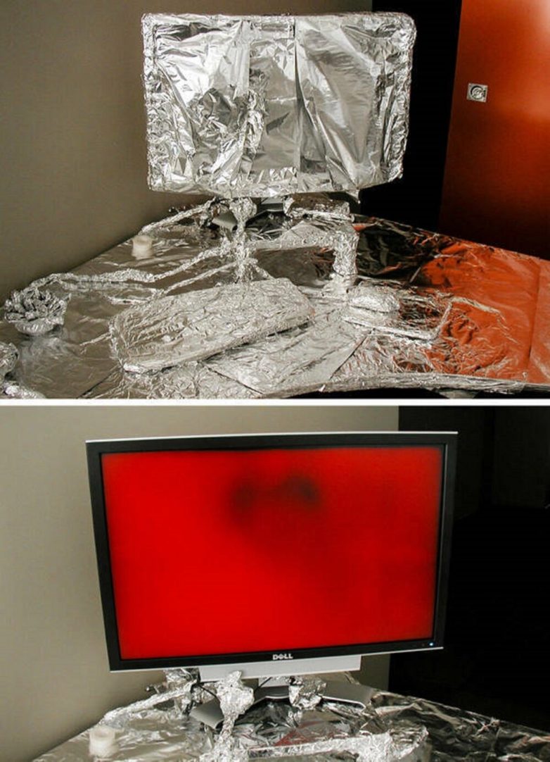 3. Коллеги решили подшутить над одним из сотрудников, обернув все предметы на его рабочем месте фольгой