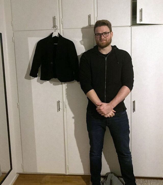 13. «Случайно уменьшила пиджак мужа. Муж — для масштаба» (фото: gielind/Reddit)