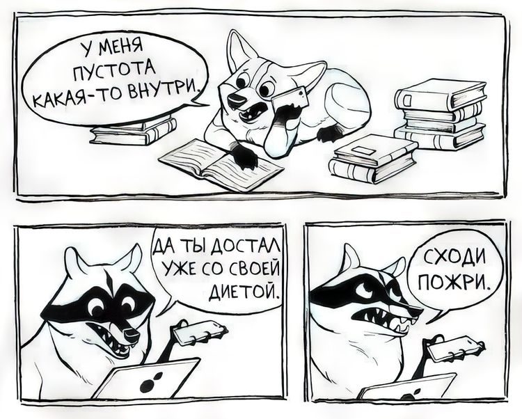 Однако есть люди, которым особо всё равно на правила приличия, и они делают то, что им хочется. Таким циником и является Гадкий Енот — главный герой комиксов Карисса Кай Пауэлл, чьи творения любезно перевели здесь, чтобы мы могли насладиться комиксами и в некоторых узнать себя.