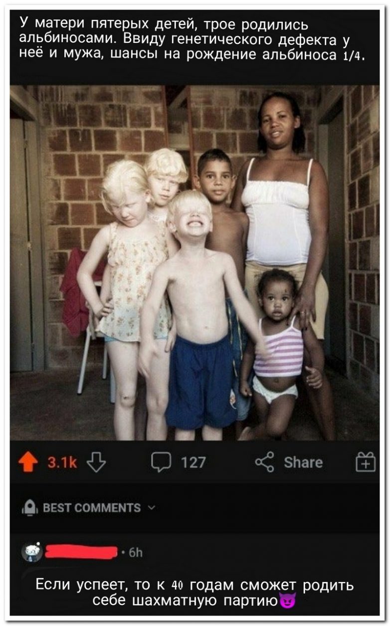 Судя по фото, шансы на рождение альбиноса не 1:4, а 3:5!