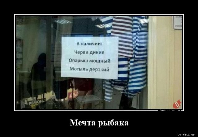 Сегодня в выпуске: про режим работы магазина, про пульты ДУ прошлого века, про любопытных соседей, про антистрессовые штаны, про мечту рыбака, про ударение и многое другое!