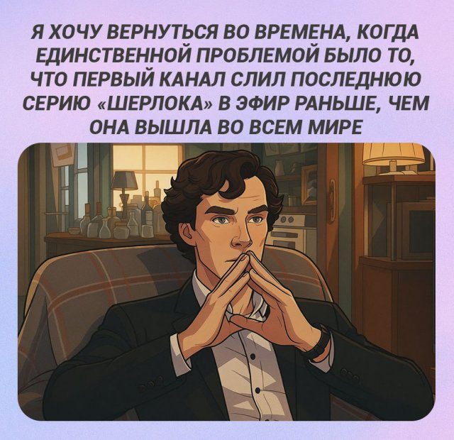 А ведь правда, давно мы не смотрели сериал «Шерлок». Который, кстати, выходил одновременно со всем миром! Были времена, да, а теперь лучшие шутки и мемы из Сети.